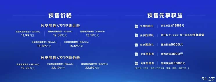 全系标配线控制动技术 预售价11.99万元起 长安凯程V919开启预售