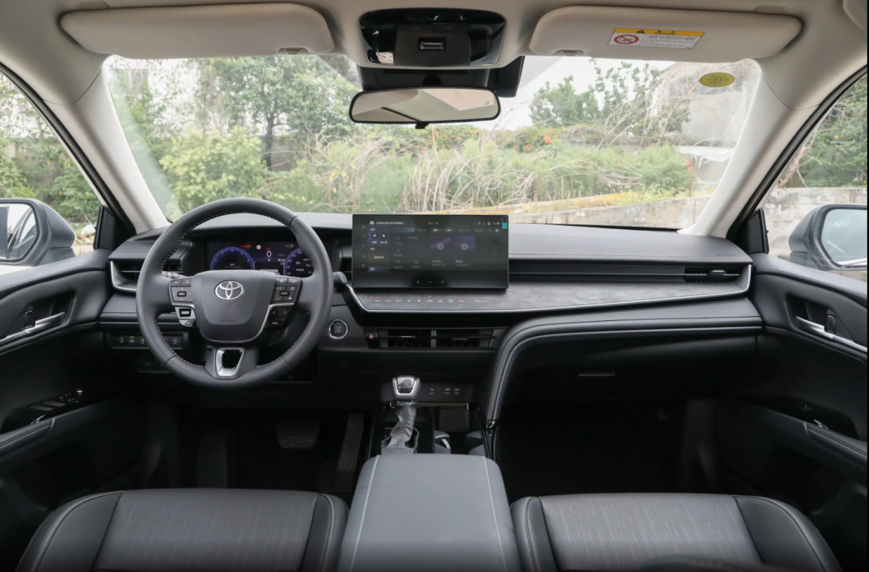 内饰方面,延续了凯美瑞的“实用为主”,中控台整体用料以合成皮革、普通塑料为主,整体质感欠佳。12.3英寸液晶仪表盘、12.3英寸中控屏、三幅式多功能方向盘,组成一套简洁基础的车机系统。尊贵版搭载Navinfo卫星导航地图,支持导航路况信息展示,且支持CarPlay、Carlink和HUAWEI HiCar三种手机互联映射,操作下来没有明显的“豪华感”,更多呈现的是一种朴实的家用风格。