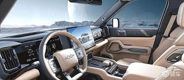 内饰方面,方程豹豹8营造出豪华与科技感兼具的驾乘环境,车内超过90%的面积采用皮质包裹,搭配胡桃木纹实木饰条和拉丝铝金属包边。