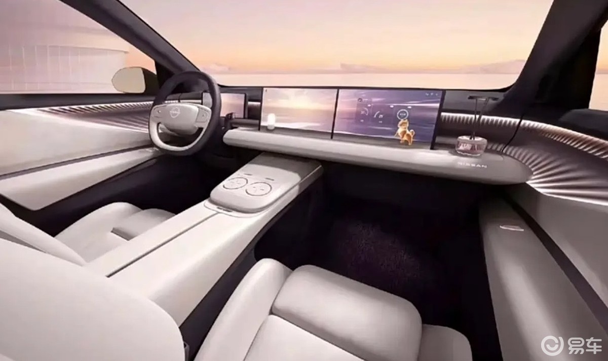 设计方面,日产NX8基本延续了日产家族V-motion设计风格,前脸配备了2.4米长的贯穿式星环灯,搭配发光LOGO与矩阵式大灯组,车身侧面采用隐藏式门把手,尾部的尾灯由2064颗OLED灯珠组成量子光幕,支持自定义灯语。