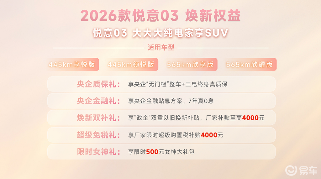 7.98万起/全面升级 2026款悦意03正中“下怀”